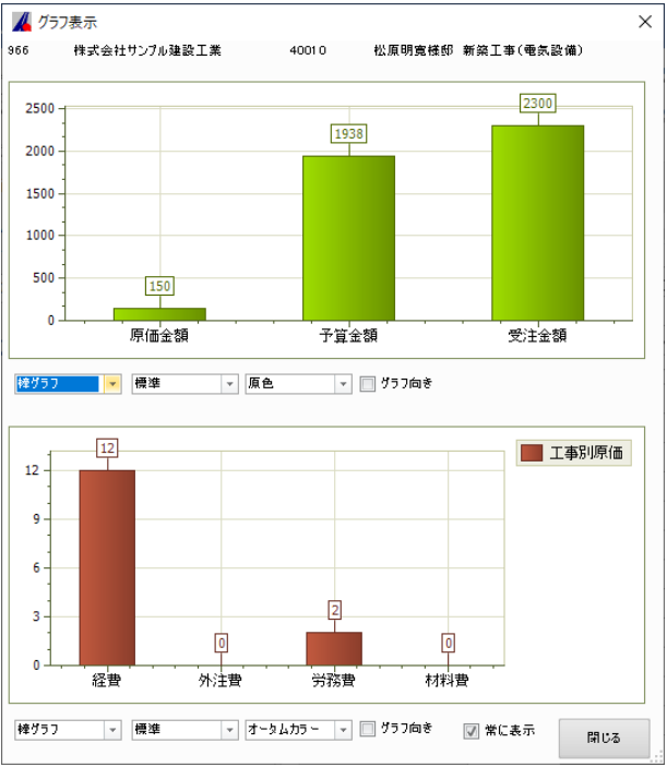 作成したデータもとに、視覚的に把握が行えるグラフを自動作成。