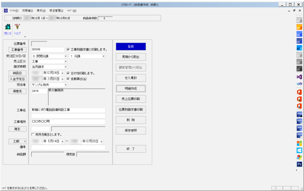 売上伝票の作成は、工事業の売上管理や請求業務に直結する重要な作業です。