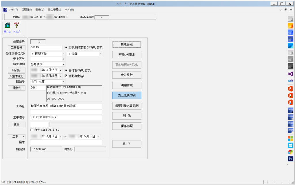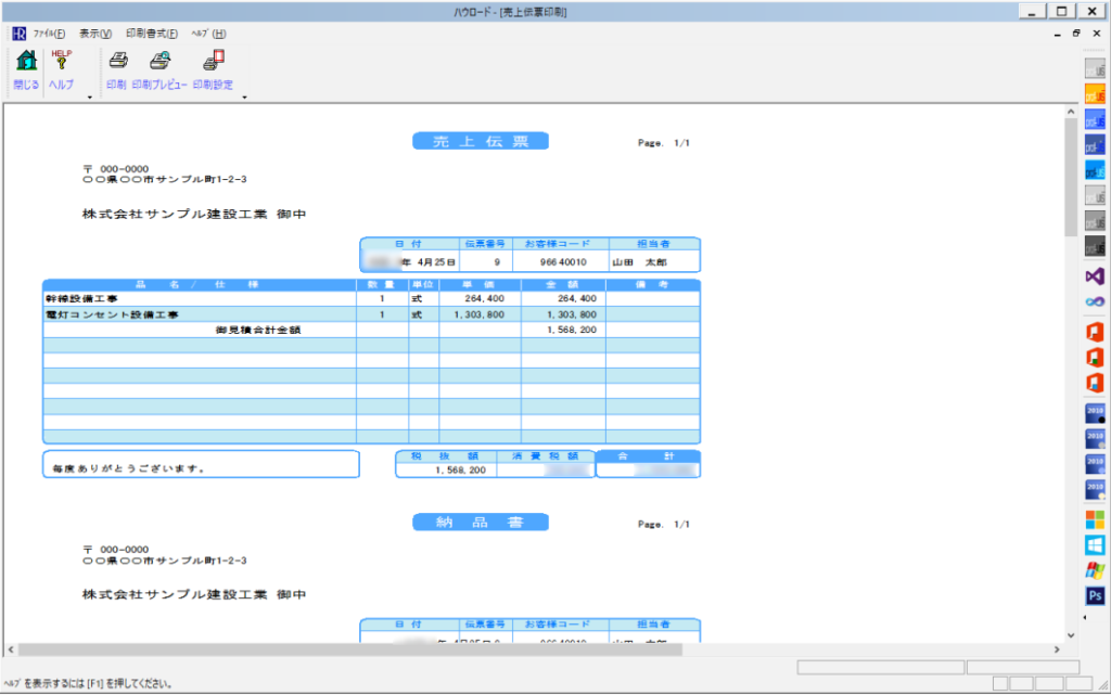 ハウロードシリーズなら、ボタン操作で簡単に納品書を作成できます。