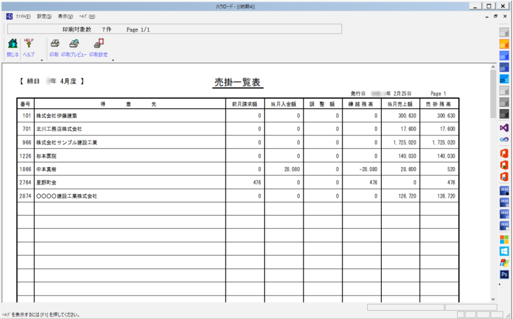 ハウロードシリーズでは、ボタン操作で得意先別の売掛金一覧表をカンタンに作成できます。