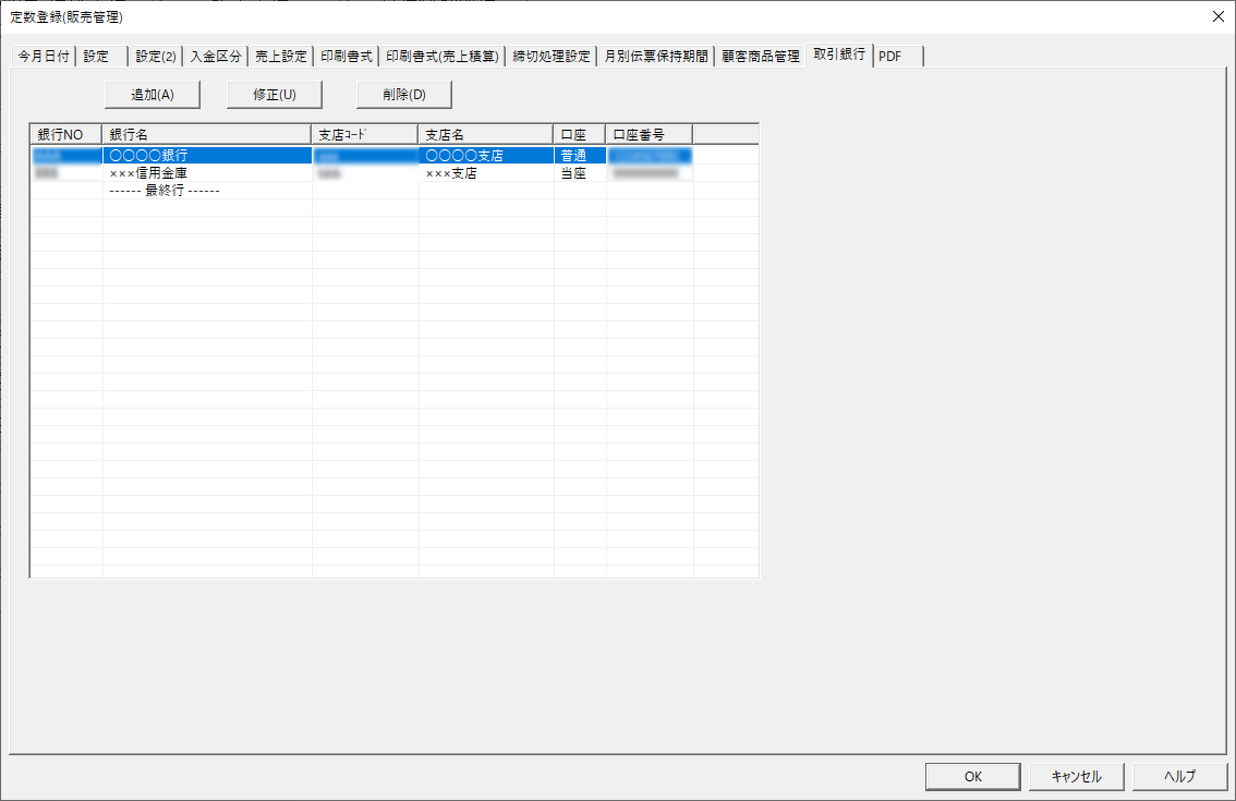 請求書などの帳票に反映される振込先情報をシステム上で一元管理できます。