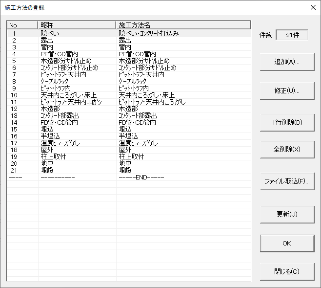 各企業の業務内容に合わせて、施工方法を自由に追加・編集できます。