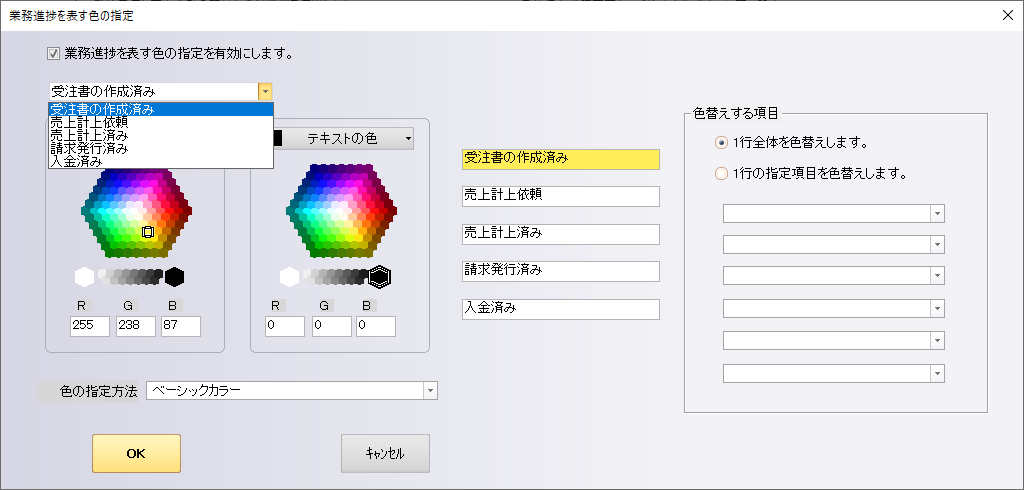 見積保存一覧において、案件の進捗状況ごとに色分けを設定できます。