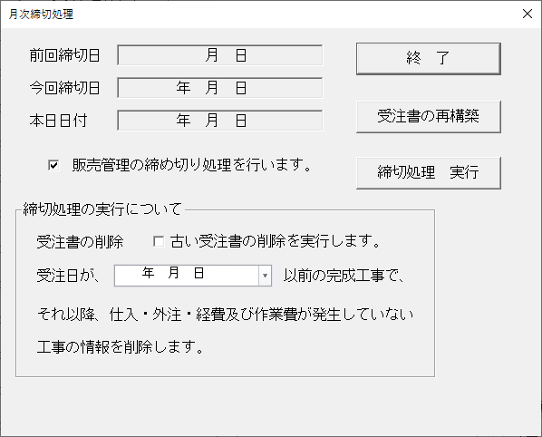 締切処理を行うことで、その月に確定した工事・受注・仕入・外注・経費などのデータを明確に区切り、