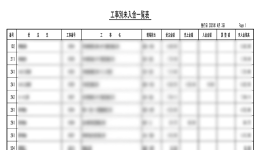 「工事名」「得意先名」などの基本情報とともに、各工事の入金ステータスを ボタンひとつで帳票化できます。