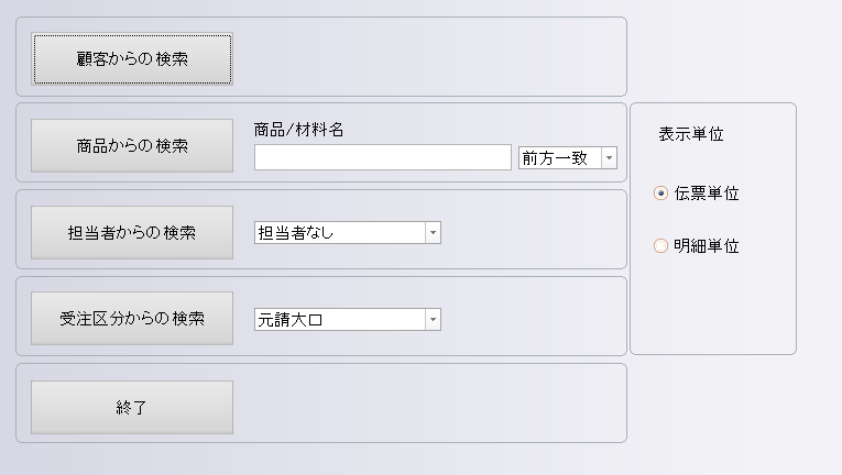 - 顧客名…会社名や顧客名から、過去の受注・発注内容を一覧で表示。