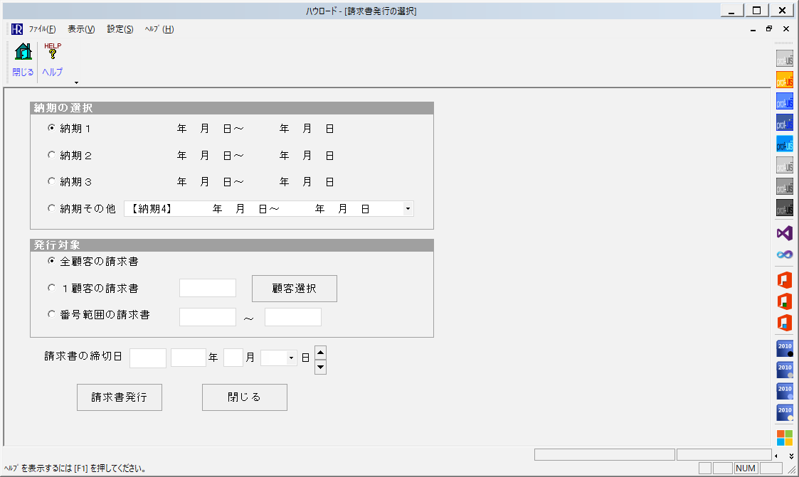 ハウロードシリーズの請求書発行は、該当する締切を選ぶだけで、対象期間の売上データを自動で集計してくれます。