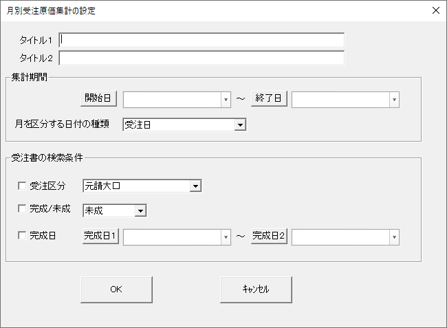 受注日・完成日など、用途に合わせた基準日での集計にも対応。