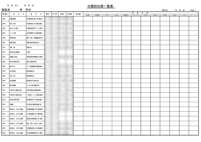 未成工事の状況を「分類別」に整理するとなると、通常なら