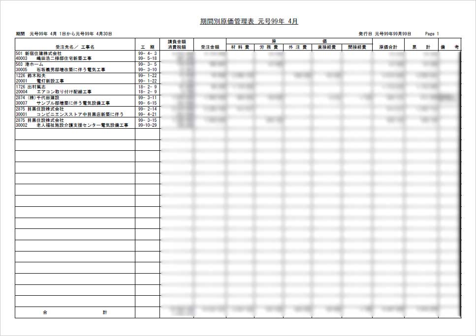期間別発生原価管理表とは、「いつ・どの工事で・どんな原価が発生したか」を、指定した期間に限定して一覧表示できる帳票です。