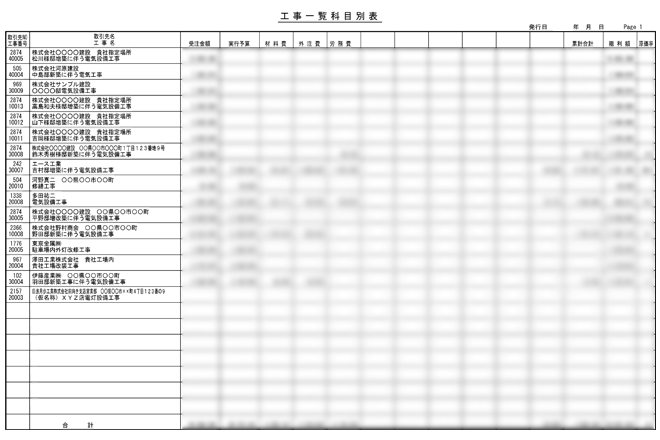 各工事にどんなコストがどれだけかかっているかを、費目別に“見える化”する帳票です。