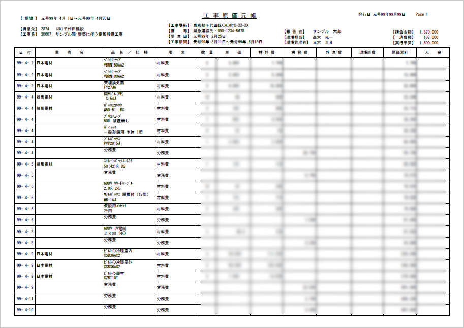 ボタンひとつでOK!日付・材料・人件費まで一覧ですぐわかる工事原価元帳