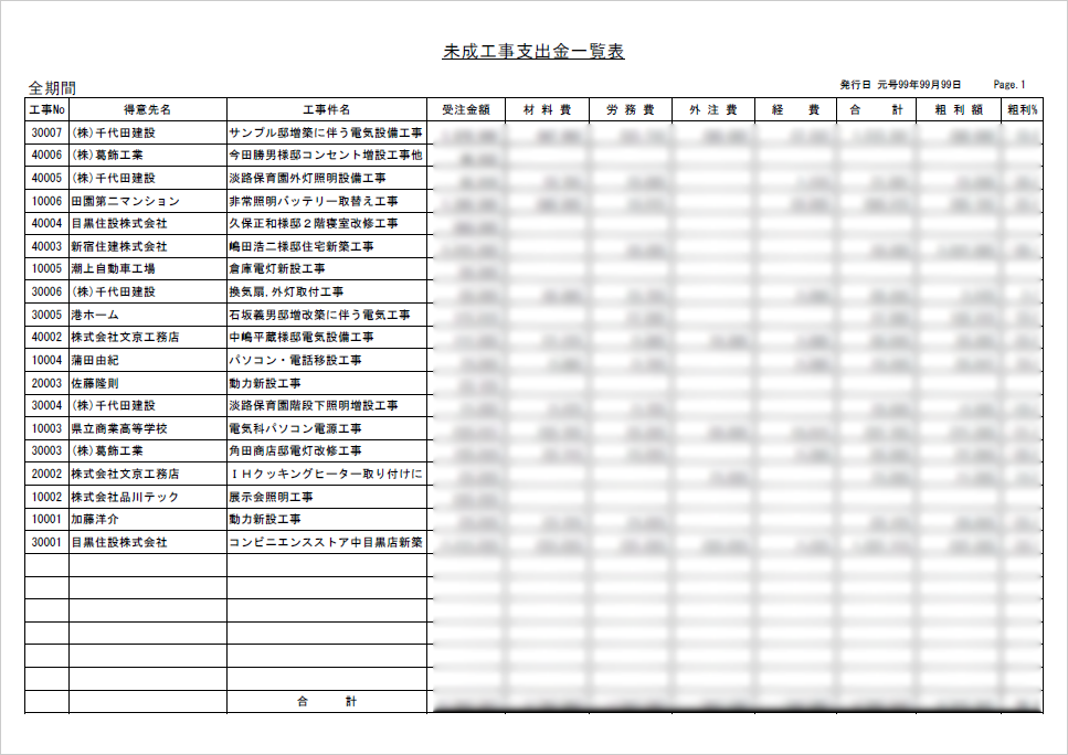 「未成工事支出金一覧表」とは、まだ完成していない工事に対して、現在までにどれだけ費用がかかっているかを一覧で確認できる帳票です。