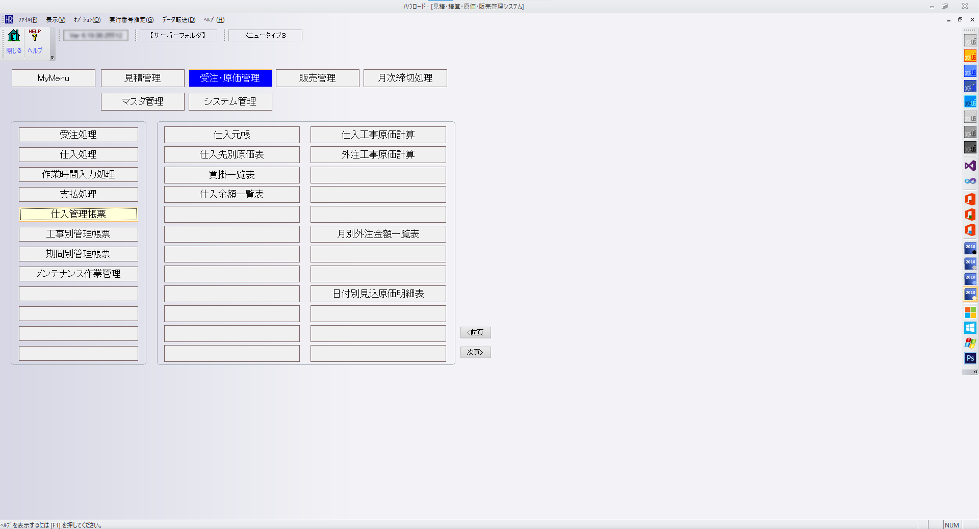 ハウロードシリーズは、ボタン操作でカンタンに「工事ごと、仕入先ごと、日付ごと、外注先ごとなど、目的に応じた形式」の帳票を出力。