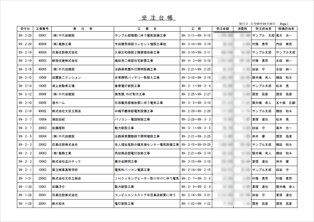 工事ごとの受注状況を一覧で管理できる帳票です。