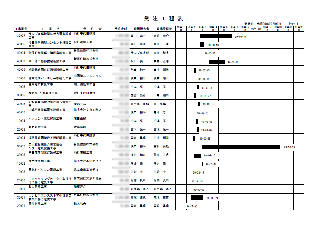 受注工程表は、今どの工事がどの段階にあるかを、ひと目で確認できる表のことです。
