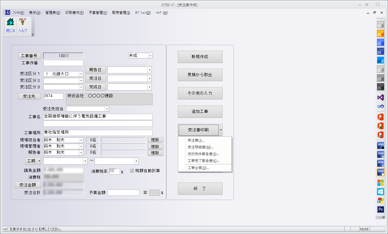 そんな中で活躍するのが、ハウロードシリーズの「受注書作成機能」。