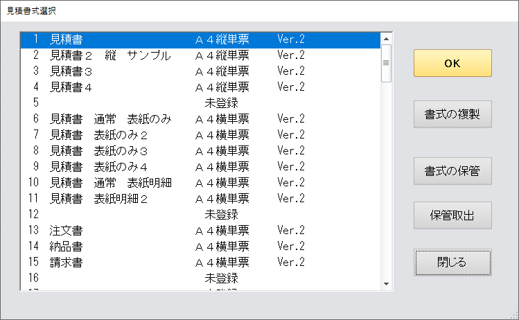 書式デザインは100種類登録ができるんです。