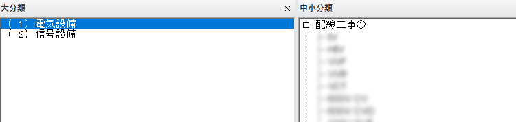 材料は大分類、中分類、詳細と階層的に分かりやすく整理されています。