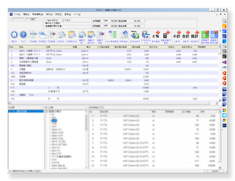 出力したExcelファイルを基に社内外での見積内容の確認を行ったり、情報共有にも便利にご活用いただけます。