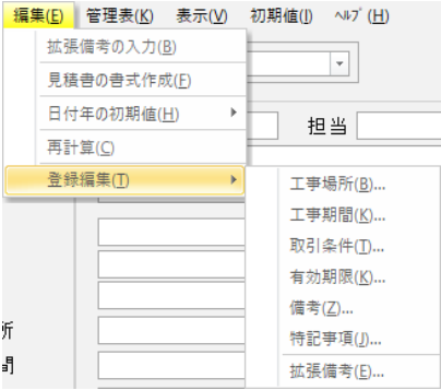 見積書表紙作成画面のメニューバーから数クリックで行え、スムーズに登録や修正が行える仕様です。
