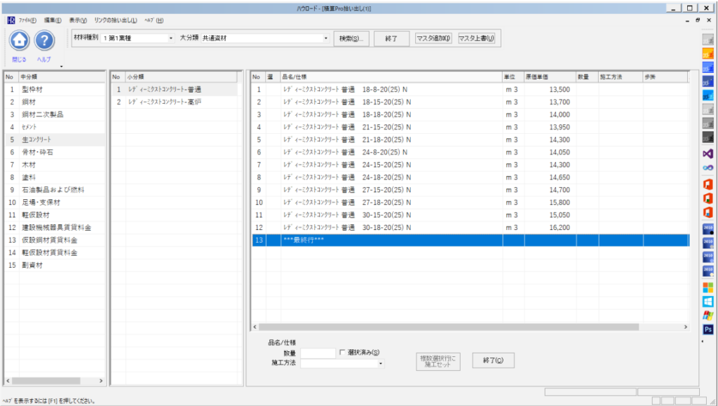 見積作成を行う際は、材料マスタからデータを呼び出すことでスムーズに行えます。