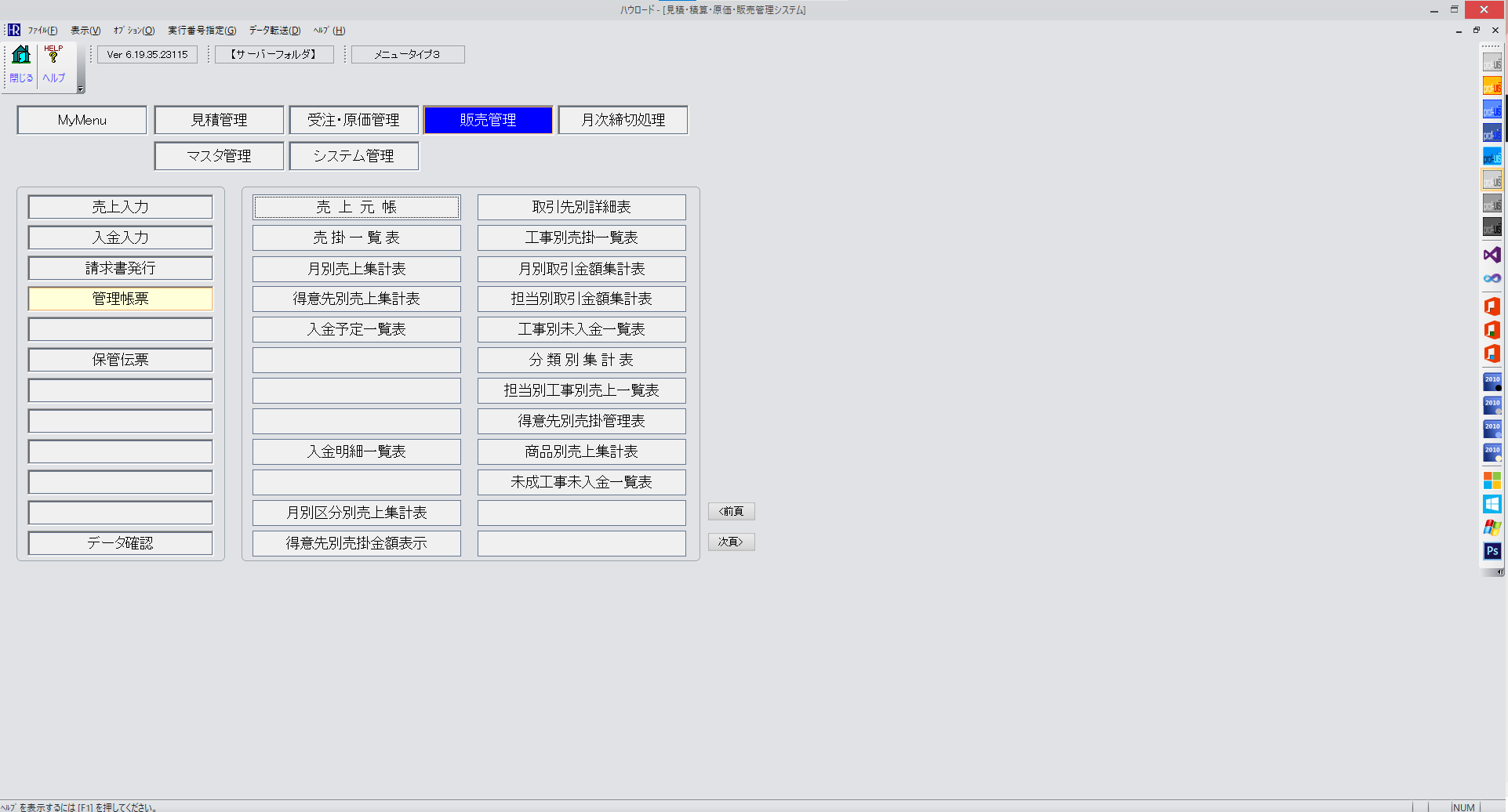 ハウロードAX見積受注・原価管理販売管理