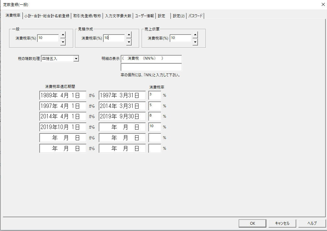 消費税の変更は、システム単位・見積書単位で行うことができます。バージョンアップなどの処理を行わずに消費税率変更が行えます。